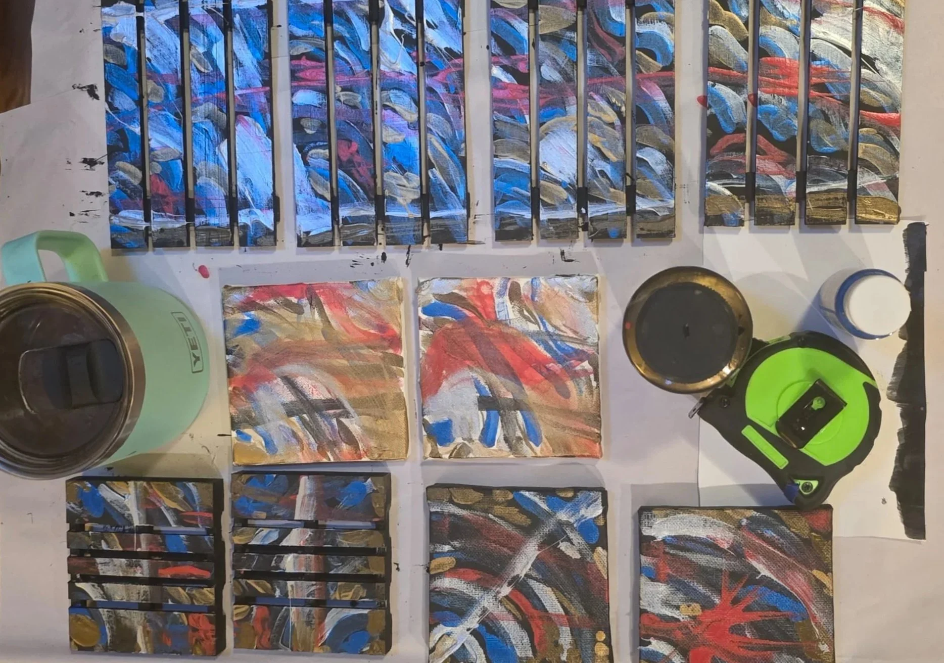 002 Paintings — Paintings in acrylic on canvas and reworked surfaces.