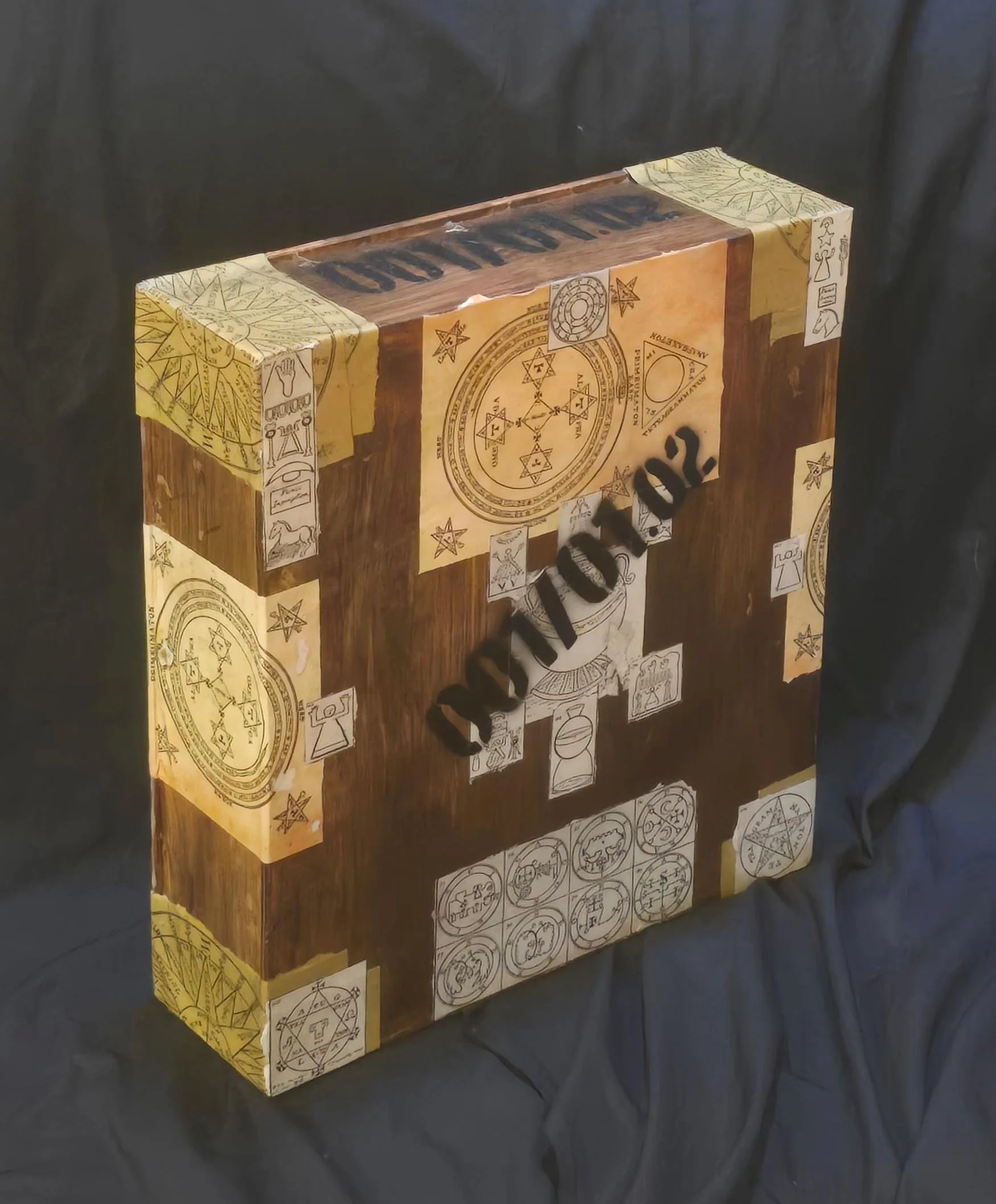 Handmade, numbered boxes containing worked and assembled found objects with mixed materials.